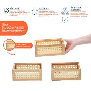 "Conheça o Kit de 3 caixas organizadoras empilháveis de bambu e palhinha 22cm da OIKOS.Multiuso, versáteis, duráveis e higiênicas, são ótimas para guardar e organizar acessórios, brinquedos, perfumes, potes e o que precisar! Caem bem em diversos ambientes e são empilháveis, ajudando a otimizar espaços.São de bambu, MDF, plástico e acrílico. Para limpar, basta utilizar um pano úmido e deixar secar em local arejado.Leve qualidade e modernidade para sua casa!O kit contém:3 caixas organizadoras empilháveis de bambu e palhinha 22cm"