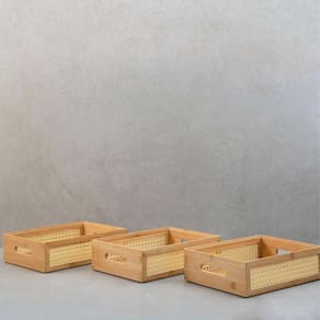 Kit 3 caixas organizadoras empilháveis de bambu e palhinha 32cm - Oikos