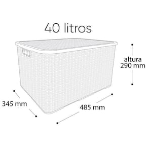 Kit 3 Caixas Organizadoras Rattan PRETA 40 Litros Arqplast Kit 3 Caixas Organizadoras Rattan PRETA 40 Litros Arqplast Caixa organizadora em plástico com tampa, que facilita a organização De guarda roupas e armários, por ser uma peça charmosa expor em Ambientes abertos dá um toque especial a decoração. Combina com vários ambientes, como cozinha, sala, banheiro e quarto. Material - Polipropileno DescriçãoDimensões:480 X 340 X 890mm (Corpo) 505 X 370 X 165mm (Tampa) (comprimento x largura x altura) medida do produtoDimensões: 485 X 345 X 290mm (comprimento x largura x altura)