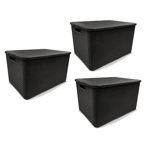 Kit 3 Caixas Organizadoras Rattan PRETA 40 Litros Arqplast Kit 3 Caixas Organizadoras Rattan PRETA 40 Litros Arqplast Caixa organizadora em plástico com tampa, que facilita a organização De guarda roupas e armários, por ser uma peça charmosa expor em Ambientes abertos dá um toque especial a decoração. Combina com vários ambientes, como cozinha, sala, banheiro e quarto. Material - Polipropileno DescriçãoDimensões:480 X 340 X 890mm Corpo 505 X 370 X 165mm Tampa comprimento x largura x altura medida do produtoDimensões: 485 X 345 X 290mm comprimento x largura x altura