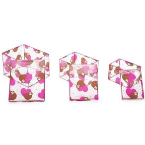 O conjunto tem 3 caixas decorativas transparentes com uma estampinha que é puro amor! São três tamanhos diferentes: