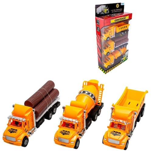 Kit 3 caminhão de brinquedo construção amarelo a fricção A criançada vai amar brincar e correr com o caminhão de brinquedo da eititoys. A aventura está garantida no mundo da imaginação com muita alegria e diversão