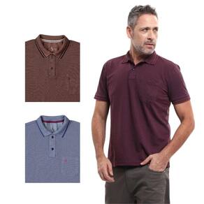 Kit 3 Camisa Polo Masculina Pique Premium com Bolso Casual - Vermelho - P