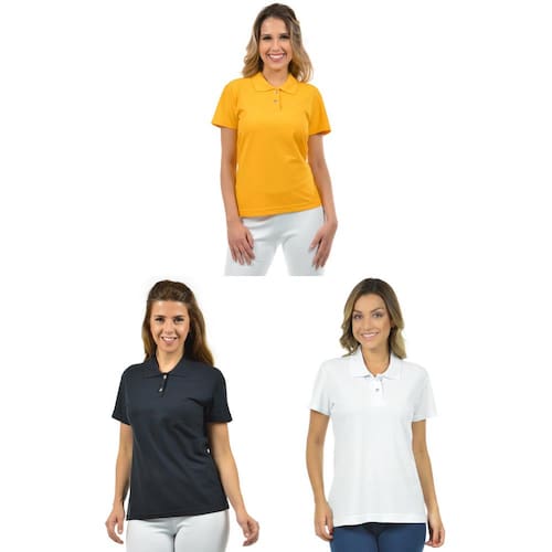 Kit 3 camisas gola polo piquet feminina fenomenal - Sortido - M