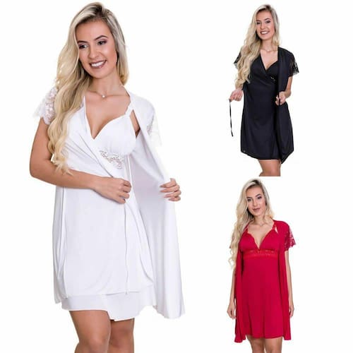 Camisola amamentação com robe em Microfibra e renda, não tem bojo.