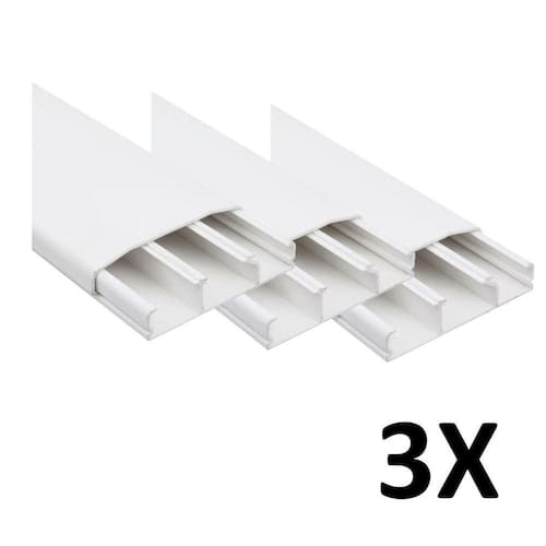 A canaleta é que responsável por proteger os cabos contra danos externos e armazenar condutores elétricos isolados, mantendo o ambiente esteticamente mais bonitas e realizando um melhor acabamento para cabos que por algum motivo têm que ficar expostos. Descrição do produto: Canaleta com Divisória Com 3 Divisórias Material: PVC Acompanha fita dupla face em toda a estrutura