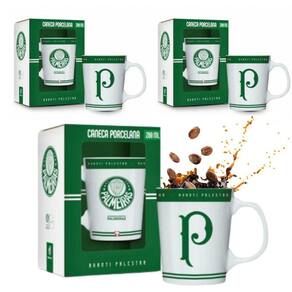 Kit 3 unidades caneca porcelana premium 260ml café palmeiras oficial com selo licenciado