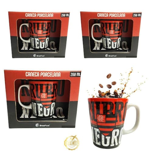 Kit 3 canecas porcelana xícara rubro negro premium 260ml preto vermelho café clube flamengo oficial Kit 3 unidades caneca porcelana premium 260ml café flamengo oficial com selo licenciado A caneca caneca porcelana premium do mengão é perfeita para os rubro negros mais apaixonados demonstrarem todo o carinho pelo seu time e ao mesmo tempo apreciar suas bebidas favoritas nos momentos mais aconchegantes da vida. Além disso você pode usá-la como porta treco, porta lápis ou presentear alguém especial. ela é fabricada em porcelana de alta qualidade que garante maior durabilidade durante seu uso e possui estampas únicas com cores vivas para deixar o ambiente ainda mais divertido e estiloso.