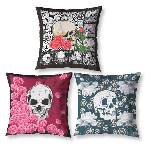 Kit 3 Capas De Almofada Infantil 40Cm X 40Cm Zíper Caveira