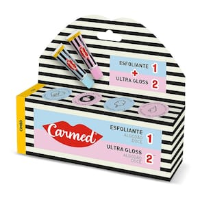 Carmed SOS Algodão Doce Esfoliante 10g + Ultra Gloss 10g Passo 1 - EsfolianteRemove as células mortas com suavidade, sem agredir, deixando os lábios renovados. Passo 2 - Ultra GlossLábios macios, hidratados e com um brilho espelhado incomparável. Ean: 7897947621183