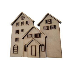 KIT com 3 Casinhas em mdf 6mm com aberturas em aplique para contrução de condomínio