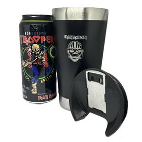 - 3 Cervejas Trooper Lata 473ml - 1 Copo Térmico 500ml com tampa e abridor