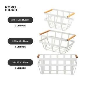 Kit 3 cesto de metal com alca de bambu frutas multiuso ========== sobre o produto ========== Os cestos de metal com alça de bambu multiuso são a solução ideal para quem busca organização e estilo. Com design moderno e funcional, é perfeito para armazenar e organizar itens em diferentes ambientes, como cozinha, banheiro, escritório ou quarto. Suas alças de bambu garantem praticidade no manuseio, enquanto o corpo em metal proporciona durabilidade e resistência. Um item indispensável para otimizar espaços com elegância. ========== especificações ========== Design minimalista que combina metal resistente e alças de bambu natural. Tamanho compacto, ideal para organizar objetos diversos. Versátil: pode ser em cozinhas, banheiros, escritórios e outros ambientes. ========== ficha técnica ========== Medidas: 33 x 17 x 15,5cm 1 unidade Medidas: 29,5 x 15 x 10cm 1 unidade Medidas: 23,5 x 16 x 15,5cm 1 unidade Material: metal / bambu Marca: paramount : 3 meses Estamos online para quaisquer dúvidas, Agradecemos e aguardamos o seu pedido. P: o cesto pode ser utilizado para organizar alimentos R: sim, o cesto é ideal para organizar alimentos embalados ou frutas e vegetais. P: é resistente à umidade R: sim, o cesto possui corpo de metal resistente à umidade, ideal para uso em banheiros ou cozinhas. P: as alças de bambu são firmes R: sim, as alças de bambu são projetadas para suportar o peso do cesto com segurança e praticidade. P: o produto é novo ou Marca: Não Informado Ean: 7902733072367