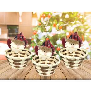-03 unidades cesto palha natalino com Papai Noel Pelúcia 15cm