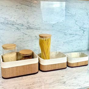 Distribuído por feheros shop Kit 3 cestos organizadores de bambu premium multiuso com forro Atenção Os cestos de bambu são ideais para quem procura unir organização e sustentabilidade no dia a dia. Fabricados com bambu natural, um material leve, resistente e moldável, são uma escolha prática e elegante para diversos usos. Por serem feitos com matéria-prima ecológica e sustentável, esses cestos ajudam a reduzir o impacto ambiental, oferecendo uma solução funcional e moderna para organizar seus ambientes. - produto premium feito com bambu natural de alta qualidade. - materiais ecológicos e sustentáveis, aliando beleza e resistência. - leia atentamente a descrição para garantir o melhor uso dos cestos. Informações do produto: O kit 3 cestos organizadores de bambu premium multiuso com forro é a escolha perfeita para quem deseja manter os ambientes organizados com charme e praticidade. Fabricados em bambu natural, eles possuem forro interno que protege os objetos armazenados e adiciona um toque de sofisticação. Podem ser em diferentes cômodos da casa ou até no escritório, sendo ideais para guardar pequenos itens, acessórios, produtos de higiene, entre outros. Combinando design atemporal e funcionalidade, esses cestos são perfeitos para compor ambientes modernos e sustentáveis. Especificações técnicas: - kit com 3 tamanhos diferentes para atender às suas necessidades de organização. - feitos de bambu natural, material leve, resistente e moldável. - composição: bambu, ferro e tecido. - forro interno removível e lavável para maior praticidade no dia a dia. - estrutura reforçada com alta durabilidade. - matéria-prima ecológica e sustentável, respeitando o meio ambiente. Ficha técnica do produto: - cesto p: altura 8cm x largura 12cm x comprimento 20cm - cesto m: altura 10cm x largura 15cm x comprimento 23cm - cesto g: altura 12cm x largura 18cm x comprimento 26cm - material principal: bambu natural - composição: bambu, ferro, tecido - forro: sim, removível e lavável Itens inclusos no pacote: 01 cesto p em bambu natural para organização 20cm x 12cm x 8cm 01 cesto m em bambu natural para organização 23cm x 15cm x 10cm 01 cesto g em bambu natural para organização 26cm x 18cm x 12cm Todas as fotos são reais do produto. Qualquer dúvida, estamos à disposição Marca: Não Informado
