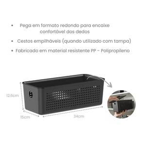 - Possui pega em formato redondo nas laterais - design minimalista - Empalhável Com uso da tampa - Ideal na organização de todos os espaços ESPECIFICAÇÕES: - Capacidade de 3L e 5,4L e 12L - Fabricado em Polipropileno PP - Com Tampa - Linha Flow