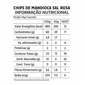 Diferenciais do Produto Chips assados de mandioca com tempero equilibrado Toque sofisticado do sal rosa do Himalaia Textura crocante e sabor marcante Sem glúten Embalagem prática de 50g