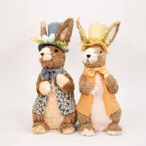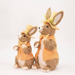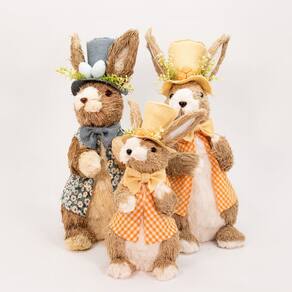 Kit 3 Coelhos de Páscoa Enfeite Decorativo Coelhinhos em Palha -