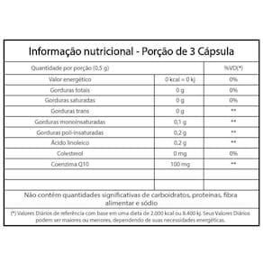 Ingredientes: óleo de soja glycine max , coenzima q10; cápsula: gelatina, água purificada, umectante ins 422 e corantes ins 150a e ins171 . Alérgicos: contém derivados de soja. Não contém glúten. Marca: Não Informado Ean: 7898713096693