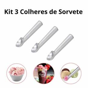 Kit 3 pegador colher de sorvete açaí profissional alumínio