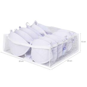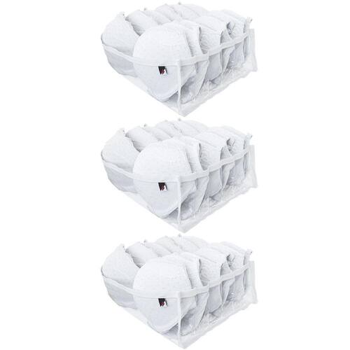 Kit 3 Colmeias Organizadoras De Sutiãs Com 6 Divisórias Organizador De Gaveta Closet. #Colmeias organizadoras para closet #Linha Basic Sonho&Estilo #Colmeias modelo n°2 Garantia: 90 Dias / Peso: 150g / Cores: Transparente e branco / Ref: GVCOLB22BRX3 Dimensões de cada colmeia: 30cm (C) x 24cm (L) x 10cm (A) Dimensões de cada divisória: 30cm (C) x 3,5cm (L) x 10cm (A) Capacidade: 18 Sutiãs. Conteúdo: 03 Colmeias organizadoras. Cuidados e limpeza: - Não utilizar produtos químicos ou abrasivos na limpeza; - Lavar a mão com temperatura máxima 40 ºC; - Evitar o contato com objetos cortantes; - Manter em lugar seco e arejado; - Não secar em tambor. Detalhes do produto: - Por serem totalmente transparentes, as colmeias permitem total visualização do seu conteúdo, deixando suas gavetas, armários ou guarda-roupas mais bonitos e práticos; - As colmeias contam com 6 nichos cada, feitos na medida perfeita para serem utilizados na organização de sutiãs de bojo; - Flexíveis e resistentes, se adequam a qualquer tamanho de gaveta. Materiais: - Gorgurão; - PVC. Esse conjunto de três colmeias organizadoras da linha Basic Sonho&Estilo foi especialmente desenvolvido para a organização de seus sutiãs de bojo sem amassá-los ou danificá-los. Seu design com seis divisórias garante o encaixe perfeito das peças, auxiliando na organização diária e com isso, proporcionando um melhor aproveitamento de tempo e espaço em closets e gavetas. O conjunto de organizadores colmeia possibilita a organização de até 18 sutiãs.