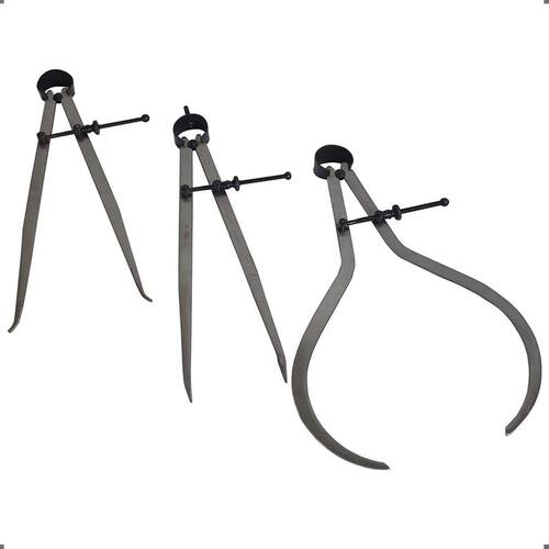 kit compasso 10 pol. 250mm para mecânico ponta reta interno e externo excellent. Indicado para verificação de diâmetro, largura, comprimento, transferência de medida, riscar e traçar metais. - marca: excellent - fornecedor: eda - kit com 3 compassos: ponta reta, interno e externo - comprimento: 10 polegadas 250mm - possui parafuso de ajuste - o compasso para mecânico eda é produzido em aço de ótima resistência, oferecendo durabilidade - indicado para verificação de diâmetro, largura, comprimento e para transferência de medida - todo o seu corpo é feito em aço e a sua utilização é bem simples: basta desrosquear a porca lateral que o próprio compasso vai se expandindo em função da mola localizada na sua parte superior - para fechá-lo, comprima com as duas mãos as duas pernas do compasso, juntando-as, e então rosqueie a porca travadora para manter o compasso fechado. - garantia: 90 dias