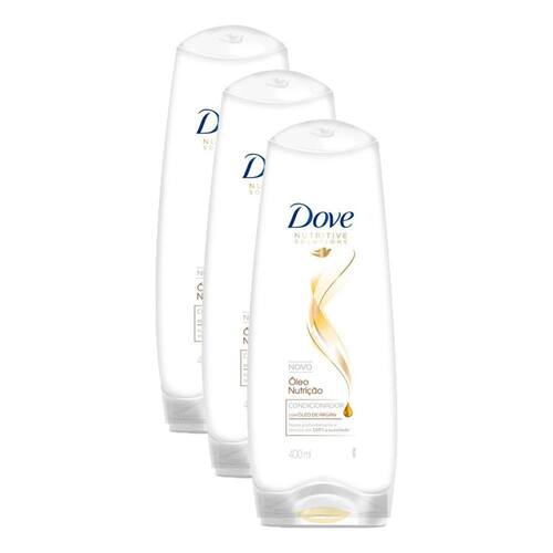 O Kit contém: 3 Condicionadores Dove Nutritive Solutions Óleo Nutrição com 400ml cada.