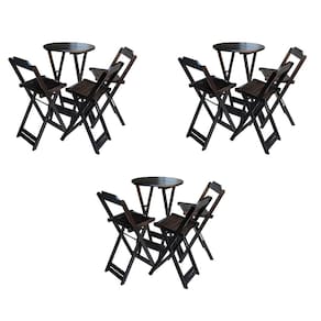 Kit 3 Conjuntos de Mesa Bistrô Dobraveis em Madeira Padrão com 3 Banquetas Altas - Tabaco - Marrom