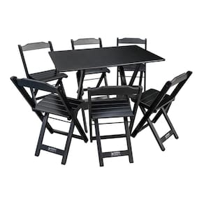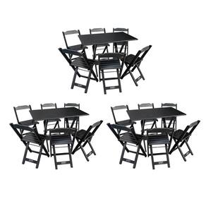 Kit 3 Conjuntos De Mesa Dobráveis De Madeira 70x110cm Com 6 Cadeiras Preta