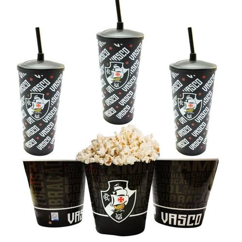 Kit 3 copos + balde de pipoca plástico preto com tampa canudo 500ml infantil criança time vasco O copo plástico com canudo - vasco é perfeito para os mais apaixonados demonstrarem todo o carinho pelo seu time do coração.