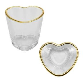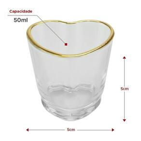 Kit 3 Copos Shot Coração Vidro com Borda Dourada 50ml Kit 3 Copos Shot Coração Vidro com Borda Dourada é perfeito para usar em festas e reuniões divertidas. Feito em vidro, seu design charmoso traz um toque de diversão para a sua reunião com os amigos.