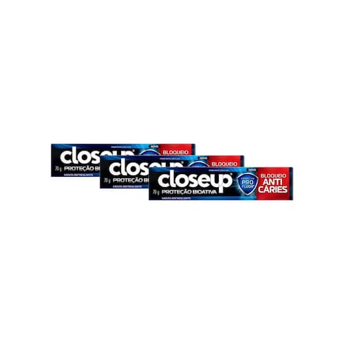 CREME DENTAL CLOSE UP ANTICÁRIES 70G Sabor menta refrescante. Closeup Proteção Bioativa Bloqueio Anticáries combate previamente o aparecimento de cáries. Possui uma fórmula inteligente que ajuda a fortalecer os dentes. Ajuda a recuperar os minerais dos dentes, seu complexo Pró-Flúor atua em toda a extensão dos dentes. Proporciona 12 horas de proteção para dentes mais fortes. O creme dental Closeup Proteção Bioativa Bloqueio Anticáries combate previamente o aparecimento de cáries. Possui uma fórmula inteligente que ajuda a fortalecer os dentes. Quando as bactérias presentes na nossa boca utilizam restos de alimentos, elas tornam o local favorável à perda de minerais dos dentes, o que pode levar ao aparecimento de cáries. Closeup Proteção Bioativa Bloqueio Anticáries ajuda a recuperar os minerais dos dentes, combatendo previamente o aparecimento de cáries e contribuindo para a saúde bucal. O sabor menta refrescante de Closeup Proteção Bioativa Bloqueio Anticáries apresenta notas provenientes de um tipo específico de hortelã (peppermint arvensis) acrescentadas de um toque doce de baunilha. Essa combinação proporciona uma prazerosa sensação de frescor. Experimente Closeup Proteção Bioativa Bloqueio Anticáries! Dentes saudáveis e protegidos para você ter confiança de chegar mais perto. Closeup Proteção Bioativa Bloqueio Anticáries está disponível no tamanho de 70g. Experimente também a outra variedade desse creme dental: Closeup Proteção Bioativa Contra o Ácido do Açúcar. Ao escovar seus dentes todos os dias após as refeições com creme dental e escova de dentes Closeup, você os protege contra as bactérias e o mau hálito. Marca: Não Informado