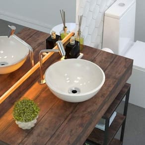 A cuba R30W tem seu design redondo e um excelente escoamento de água, é fabricada em mármore sintético com acabamento em Hard Lacca PU, material bem semelhante a louça, muito resistente e mais econômico.... Altura do Conjunto: 12 cm Ambiente: null Ambiente Principal: Banheiro Cor: Bege Informação Complementar: 3x Cuba de Apoio para Banheiro R30W Redonda Bege Largura: 30 cm Altura: 12 cm Peso: 2 kg