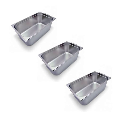 Kit 3 Cubas Gastronômica Inox GN 1/1 150mm com Alça Prateada