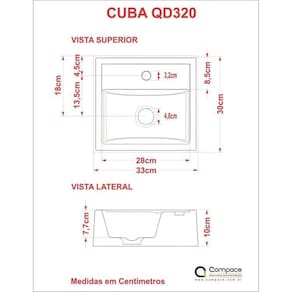 A cuba Q32 tem seu design quadrado, especial para pequenos espaços e um excelente escoamento de água. Fabricada em mármore sintético com acabamento em Hard Lacca PU, material bem semelhante a louça, muito resistente e mais econômico. Altura do Conjunto: 10 cm Ambiente: null Ambiente Principal: Banheiro Cor: Cinza Informação Complementar: 3x Cuba para Banheiro Q32W Cinza Largura: 30 cm Altura: 10 cm Peso: 3,75 kg