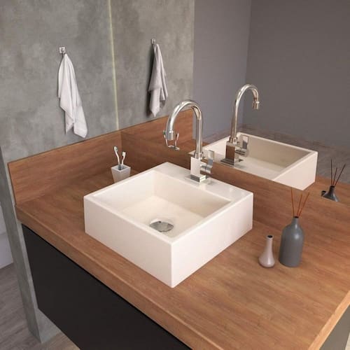 A cuba Q355 tem seu design quadrado e um excelente escoamento de água. Fabricada em mármore sintético com acabamento em Hard Lacca PU, material bem semelhante a louça, muito resistente e mais econômico! Altura do Conjunto: 11.5 cm Ambiente: null Ambiente Principal: Banheiro Cor: Bege Informação Complementar: 3x Cuba para Banheiro Q355W Quadrada Bege Largura: 35 cm Altura: 11,5 cm Peso: 5,85 kg