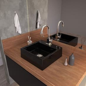 A cuba Q355 tem seu design quadrado e um excelente escoamento de água. Fabricada em mármore sintético com acabamento em Hard Lacca PU, material bem semelhante a louça, muito resistente e mais econômico. Altura do Conjunto: 11.5 cm Ambiente: null Ambiente Principal: Banheiro Cor: Preto Informação Complementar: 3x Cuba para Banheiro Q355W Quadrada Preto Largura: 35 cm Altura: 11,5 cm Peso: 5,85 kg