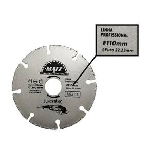 Disco de corte segmentado em tungstênio, ideal para cortes secos em madeira, MDF, compensado e acrílico. Seus segmentos de carboneto de tungstênio oferecem alta resistência ao desgaste, proporcionando cortes rápidos, precisos e com acabamento limpo. Compatível com esmerilhadeira, possui furo adaptável e acompanha anel de redução para uso em serra mármore Makita . Perfeito para marcenaria, construção e projetos que exigem precisão e durabilidade em materiais diversos.