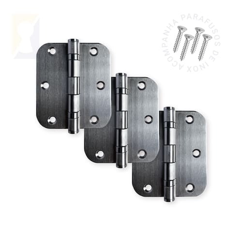 Kit 3 Dobradiças Escovada C/Redondo Inox Com Rolamento 3 x 2 ½ -