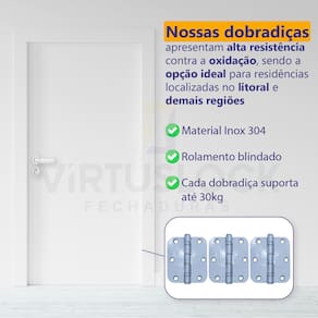 1?? Qualidade Inigualável: Nossa dobradiça é fabricada em Inox 304, um material conhecido por sua excepcional resistência à corrosão e alta durabilidade. Essa é a garantia de que sua dobradiça manterá sua integridade mesmo nas condições mais adversas.