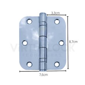 Kit 3 Dobradiças Polidas C/Redondo Inox Com Rolamento 3 ½ x 3 -