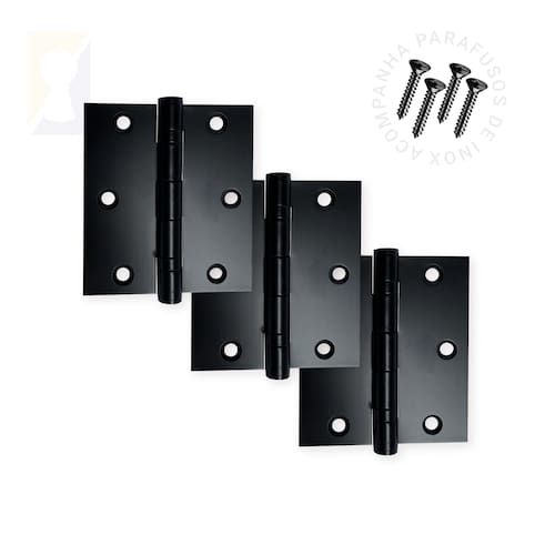 Kit 3 Dobradiças Pretas C/Reto Inox Com Rolamento 3 x 2 ½ -