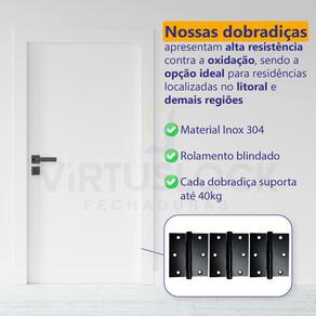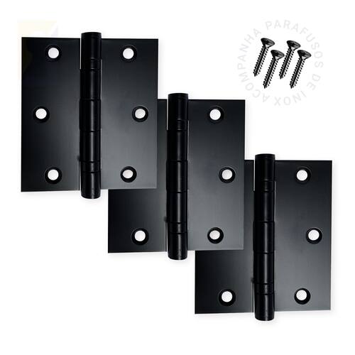 Kit 3 Dobradiças Pretas C/Reto Inox Com Rolamento 3 ½ x 3 -