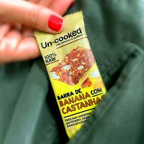 1 unidade: Barra de Banana com Castanhas Sem Glúten Vegano Uncooked 30g