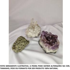 Kit 3 Drusas Pedras Naturais: Pirita, Ametista e Cristal Quartzo
