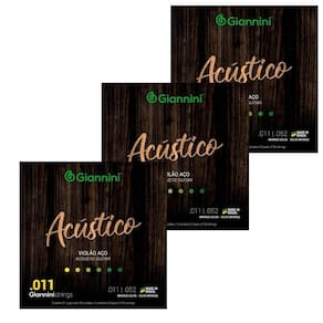 KIT 3 ENCORDAMENTO VIOLÃO AÇO GIANNINI GESPW BRONZE SÉRIE ACÚSTICO 011