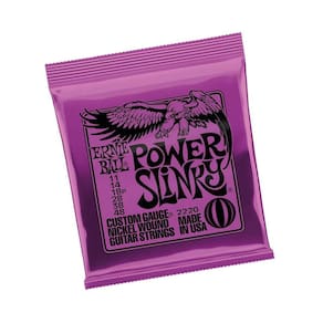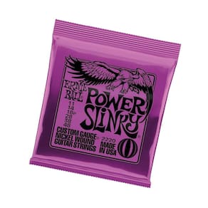As cordas para Guitarra Ernie Ball Power Slinky são uma combinação perfeita para aqueles que gostam de ritmos pesados para rock and roll ou blues. Power Slinkys têm sido as preferidas de Slash, Metallica e Kenny Wayne Shepherd devido à combinação de bitola mais grossa proporcionando um tom ligeiramente mais poderoso. Estas cordas são fabricadas com precisão para os mais altos padrões e especificações mais exigentes, garantindo a consistência, desempenho ideal e durabilidade. As cordas Power Slinky são feitas de fio de aço niquelado enrolado em torno de um fio hexagonal de aço carbono no núcleo, produzindo um timbre bem balanceado para sua guitarra.