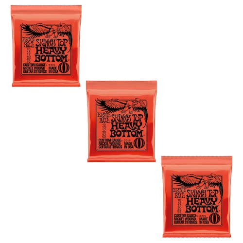 Kit 3 Encordoamento Para Guitarra 010 Slinky Níquel Ernie Ball Top Heavy Ernie Ball, a líder mundial na fabricação de cordas e acessórios, tem feito cordas de alta qualidade para guitarra e baixo desde 1962. Músicos como Paul McCartney, Keith Richards, Eric Clapton, Slash, Jimmy Page e Buddy Guy tem tocado com cordas Ernie Ball para criar um som único. Nós usamos as últimas tecnologias e os melhores materiais para continuamente aperfeiçoar sua experiência ao tocar e fornecer uma expressiva palheta de opções inigualável.