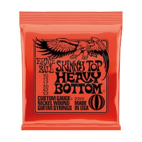 Modelo: Skinny Top Heavy Bottom Slinky Marca: Ernie Ball Material das Cordas Enroladas: Aço niquelado com núcleo hexagonal em aço Material das Cordas Lisas: Aço carbono temperado banhado a estanho Tonalidade: Equilibrada, com graves encorpados e agudos brilhantes Nível de Tensão: Mista (agudas leves / graves pesadas) Indicação: Rock, Hard Rock, Metal, Fusion, e estilos que exigem ataque e estabilidade nos graves Acabamento: Níquel Durabilidade: Alta Sensação ao Tocar: Cordas superiores leves para solos Cordas graves pesadas para riffs firmes e afinação estável Calibre: 010, .013, .017, .030, .042, .052