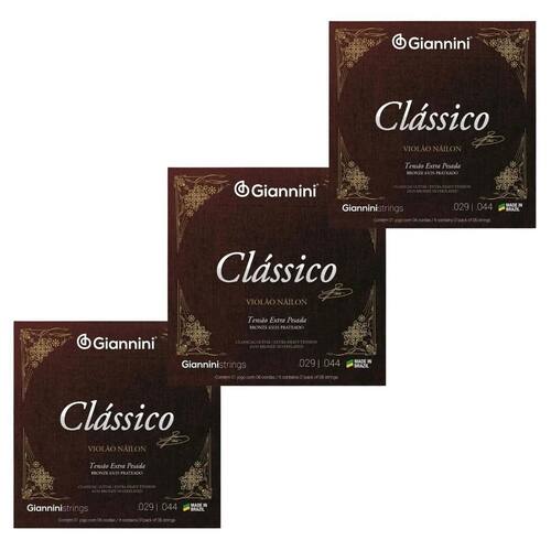Kit 3 Encordoamento Violão Nylon Giannini Clássico Extra Pesada
